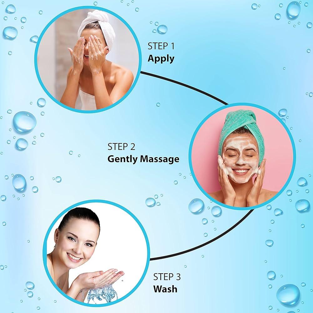 ضعي كمية مناسبة من الغسول على بشرة مبللة، دلكي بلطف بحركات دائرية، ثم اشطفي جيدًا. كرّري يوميًا كجزء من روتينك للعناية بالبشرة.